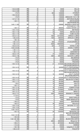 Este documento presenta un plan de compras de una entidad municipal para el año fiscal 2013. Incluye una lista de más de 100 elementos con su código, cantidad, modalidad de contratación, mes de compra proyectado y valor presupuestado para cada uno. El valor total presupuestado para todas las compras es de 554.799.756,00 pesos.