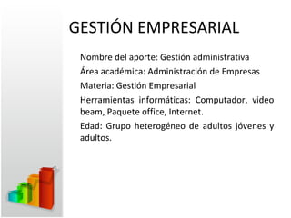 Este documento presenta un plan de acción para la gestión administrativa. El objetivo general es que los estudiantes identifiquen los pilares del proceso administrativo y la estructura organizacional. El cronograma incluye sesiones para conceptualizar la administración, analizar la planeación, organización, dirección y control de empresas. Se utilizarán diversas actividades como juegos, debates y presentaciones para cubrir los temas.