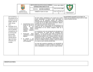 Este documento presenta el plan de aula para una clase de ciencias sociales de 4o y 5o grado en la Escuela Normal Superior Farallones de Cali. El plan se centra en la relación histórico-cultural y cubrirá temas como la independencia de Colombia, el urbanismo como reflejo de influencias culturales, y las características de las formas de vida durante la colonia. El profesor utilizará estrategias como grupos de trabajo, visitas a museos, y el análisis de fuentes en línea para enseñar estas lecciones e