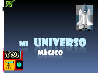 El proyecto de aula "Mi Universo Mágico" surge de los intereses de los niños en explorar la naturaleza, los animales, el cielo y eventos celestes. El proyecto busca integrar varios intereses de los niños a través de actividades lúdicas que fortalecen sus habilidades y conocimientos, siguiendo los principios de integralidad, participación y lúdica de la Ley 115 de 1997. El proyecto cubrirá varios temas relacionados con la Tierra, el sistema solar, el universo y la