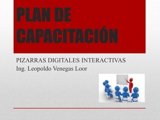 El documento presenta un plan de capacitación de 2 meses para el personal docente de la Unidad Educativa Santa Mariana de Jesús sobre el uso de pizarras digitales interactivas. La capacitación se llevará a cabo mediante el método de aprendizaje b-learning con sesiones presenciales semanales de 2 horas y el uso de un aula virtual basada en la metodología PACIE.