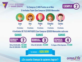 El documento muestra tres niveles de afiliados con diferentes puntos y comisiones ganadas. Los afiliados de nivel 1 ganan $12,000 con 10 puntos y una comisión del 10%. Los de nivel 2 ganan $120,000 con 100 puntos y una comisión del 8%. Los de nivel 3 ganan $1,200,000 con 1,000 puntos y una comisión del 4%.