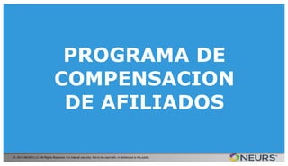 El documento presenta un programa de compensación para afiliados de una nueva red social destinada a emprendedores, con diferentes niveles de afiliación (básico, pro y socio) y beneficios asociados. Los afiliados pueden generar ingresos residuales e iniciales según el número de cuentas referidas y el tipo de membresía adquirida. Se incluyen detalles sobre requisitos mínimos, comisiones por niveles, y un bonus global que se introducirá en el futuro.