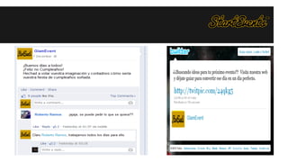 Este documento presenta un plan de negocios para una empresa de gestión de eventos en Ourense. Se detalla la idea de negocio, que es crear una empresa moderna y personalizada para la organización de todo tipo de eventos. Se analiza el entorno, la competencia y el mercado objetivo. La estrategia de marketing se centrará en posicionar la empresa como especializada en el cliente y la innovación constante a través de las redes sociales y el boca a boca. El objetivo es afianzarse en el mercado en el primer año y comenzar a obtener