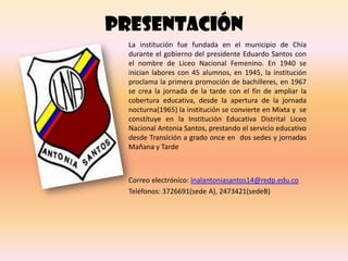 1) El liceo fue fundado en 1940 y atiende desde transición a grado 11 en dos sedes y jornadas.