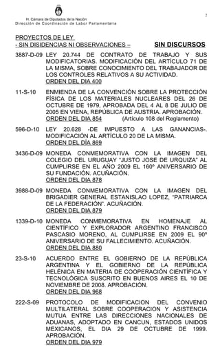 ORDEN DEL DIA 854 (Artículo 108 del Reglamento)
