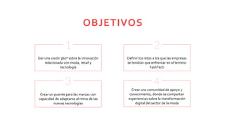 El plan de moda digital 2017-2018 tiene como objetivos dar una visión integral sobre innovación en moda, retail y tecnología, crear una comunidad para compartir experiencias sobre transformación digital en la industria de la moda, definir los retos a los que las empresas se enfrentarán en FashTech, y crear un puente para marcas capaces de adaptarse a las nuevas tecnologías. Sus actividades principales son la conferencia London FashTech el 24 de octubre de 2017 y FashTech West Coast del 22 al 26 de mayo de 2017.