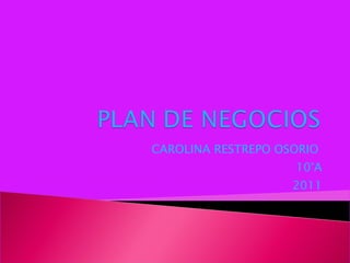 Este documento presenta un ejemplo de plan de negocios para una empresa llamada Fiestaventura S.L. que ofrece servicios de monitorización y actividades para campamentos. El plan analiza factores como el mercado objetivo, la competencia, las fortalezas de la empresa, los objetivos y la estrategia. El documento provee este ejemplo para guiar a otros emprendedores en la elaboración de sus propios planes de negocios.