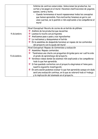 El documento presenta el plan de trabajo para un proyecto sobre las vacas desarrollado en un aula de educación especial durante noviembre y diciembre. El plan incluye actividades para cada semana con el objetivo de que los estudiantes aprendan sobre las características de las vacas, dónde viven, qué comen y los productos que proporcionan a las personas. Algunas actividades son asambleas, el análisis de información y videos, cuentos interactivos y la preparación de un batido de plátano. El proyecto concluye