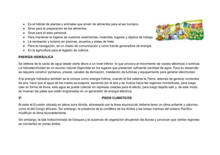 El plan de trabajo describe dos lecciones sobre energía y pisos climáticos para estudiantes de 4to y 5to año. La primera lección explora el agua como fuente de energía a través de observaciones, experimentos y lecturas. La segunda lección examina los pisos climáticos del Ecuador mediante imágenes, preguntas, lectura y mapas conceptuales. El plan incluye objetivos de aprendizaje, materiales, actividades y evaluaciones para las dos lecciones.