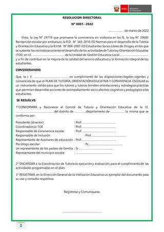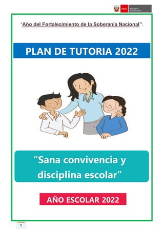 Este documento presenta el Plan de Tutoría 2022 de una institución educativa. Establece el comité de tutoría y orientación educativa, e incluye objetivos como implementar la tutoría, orientación y convivencia escolar mediante la planificación, ejecución y evaluación de actividades para contribuir a la calidad educativa y formación integral de los estudiantes. También caracteriza problemas institucionales como bajo rendimiento académico y falta de valoración cultural, proponiendo soluciones como promover el uso adecuado de las TIC y eventos cultural