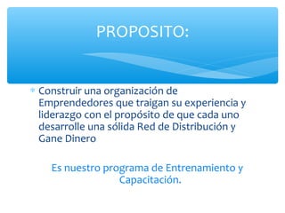 El plan de negocio OG Team Wise en Puerto Rico se centra en construir una red de emprendedores a través de un sistema de capacitación y entrenamiento. La estrategia incluye un programa de 18 meses que abarca prospección, asociación y desarrollo de liderazgo utilizando tecnologías como teleconferencias y marketing digital. El objetivo es crear una organización de alto rendimiento basada en la duplicación y el crecimiento personal, destacando la importancia de las relaciones humanas sobre los planes de compensación.