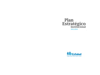 El documento presenta el Plan Estratégico Institucional 2012-2016 del Seguro Social de Salud (EsSalud) en Perú. Incluye la visión, misión y objetivos estratégicos de EsSalud, así como las estrategias, indicadores y metas definidas para el periodo 2012-2016. El plan busca mejorar el acceso a servicios de salud de calidad para los asegurados, garantizar la sostenibilidad financiera de la institución y implementar una gestión eficiente basada en resultados.