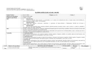 Este documento presenta la planificación de clases para el curso 4o de inglés del Colegio Eusebio Lillo en Punta Mira durante el año 2012. La unidad 3 se centra en acciones en la escuela y hábitos de higiene personal. Las clases incluyen actividades como crear presentaciones de PowerPoint, leer historietas, realizar mímicas y una evaluación final. El objetivo es que los estudiantes conozcan y practiquen vocabulario y estructuras relacionadas a estas temáticas.