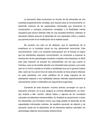 Este documento presenta el plan integral de aprendizaje de una escuela primaria en Venezuela. El plan busca evaluar las habilidades de los estudiantes en lenguaje y matemáticas a través de pruebas y observaciones diarias durante 10 días. El documento explica el propósito del plan, las áreas evaluadas, las actividades planeadas, y los instrumentos y fechas de evaluación.