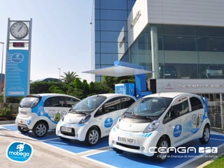 Este documento describe el Plan de Movilidad Eléctrica de Galicia (MOBEGA), un proyecto de 2.4 millones de euros que incluye 7 estaciones de carga eléctrica y una flota de 28 vehículos eléctricos para promover la movilidad eléctrica en ciudades gallegas. El proyecto demuestra que Galicia es pionera en movilidad eléctrica interurbana en Europa a través de la primera red de estaciones de carga eléctrica con tecnología gallega.