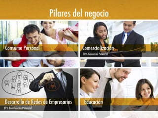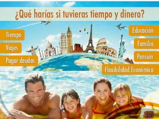 Este documento describe una oportunidad de negocio de marketing multinivel que ofrece a los participantes ganar dinero a través de la venta de productos y la creación de una red de distribución. Promete que los participantes podrán ganar más dinero cuanto más grande sea su red y que podrán alcanzar diferentes niveles de liderazgo y bonos. También detalla los diferentes niveles que un participante puede alcanzar, como Zafiro, Esmeralda y Diamante, y los beneficios financieros asociados a cada nivel.