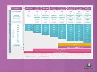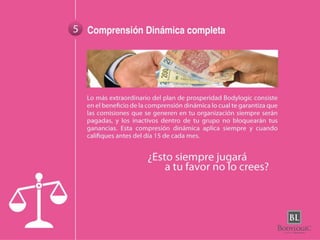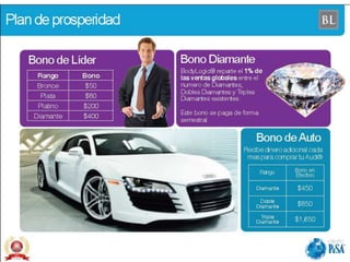 El documento describe un producto de cuidado personal desarrollado con fórmulas biodegradables y de grado hospitalario. Incluye beneficios como afiliación vitalicia, promociones mensuales, pago de comisiones y bonos de liderazgo. Explica cómo calcular el precio público versus el precio de afiliado, así como el sistema de generaciones y bonos directos y residuales que ofrece la compañía.