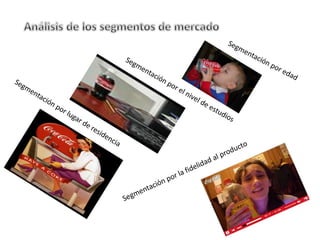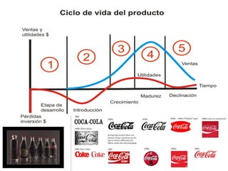 Coca Cola fue creada en 1886 como un jarabe medicinal y se convirtió en una de las marcas más reconocidas a nivel mundial debido a las estrategias de marketing de sus propietarios. Originalmente contenía hojas de coca y semillas de nuez de cola, y se empezó a vender como un remedio a 5 centavos por vaso. En la actualidad, Coca Cola mantiene su liderazgo en el mercado de bebidas no alcohólicas gracias a campañas publicitarias innovadoras y su capacidad para estable