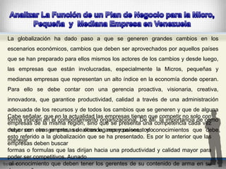 Este documento describe la importancia de realizar un plan de negocios completo para nuevos proyectos empresariales. Explica que un plan de negocios efectivo incluye un análisis del mercado, la competencia, las operaciones y finanzas de la empresa, así como los riesgos potenciales. Detalla los 8 pasos clave que debe contener un plan de negocios, incluyendo definir el producto o servicio, analizar las fortalezas y debilidades, y establecer estrategias de marketing y distribución. Concluye que aunque un plan de