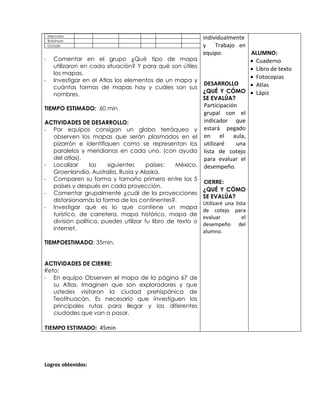 Este documento presenta la planeación didáctica de una lección de geografía para estudiantes de quinto grado. La lección se enfoca en los mapas, sus características y usos. La secuencia didáctica incluye actividades de inicio, desarrollo y cierre para explorar los tipos de mapas y sus funciones. El objetivo es que los estudiantes reconozcan la extensión y límites de los continentes en los mapas.
