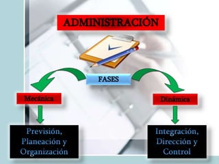 Este documento describe las fases y elementos clave de la planeación. Explica que la planeación estratégica, táctica y operativa son los tres tipos principales y define cada una. También describe los componentes fundamentales de la planeación como la misión, objetivos, estrategias, programas, suposiciones y presupuestos. Resalta la importancia de considerar factores internos y externos, y actualizar los planes periódicamente.