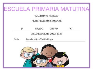 Este documento presenta la planeación semanal de una maestra de primer grado de la Escuela Primaria Lic. Isidro Fabela para la semana del 3 al 7 de octubre de 2022. La planeación incluye las asignaturas de Español, Matemáticas, Maduración, Conocimiento del Medio y Formación Cívica y Ética. Cada día se describen las actividades planificadas para cada asignatura con el objetivo de desarrollar aprendizajes fundamentales en lectoescritura, pensamiento matemático, habilidades motrices y