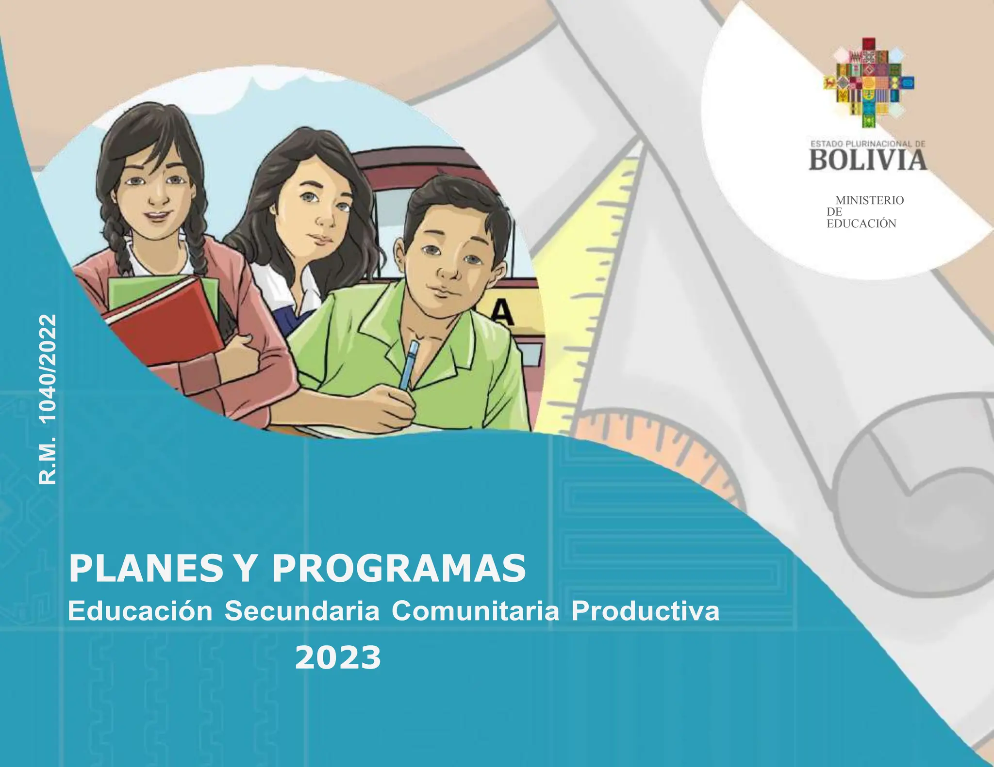 Este documento presenta los planes y programas actualizados para la Educación Secundaria Comunitaria Productiva para el año 2023. Incluye la caracterización del nivel educativo, los perfiles de salida por año de escolaridad, y los planes y programas detallados para 14 áreas de estudio. El objetivo es mejorar la calidad educativa a través de una actualización curricular participativa que refuerce una perspectiva de género y derechos, y promueva el desarrollo de habilidades básicas y capacidades para la investigación.