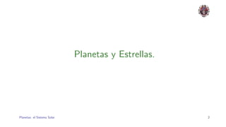Este documento proporciona una introducción al Sistema Solar, incluyendo la historia de los modelos geocéntrico y heliocéntrico, y los descubrimientos de Copérnico, Kepler, Galileo y otros. Luego describe los objetos que componen el Sistema Solar como planetas, planetas enanos, satélites y cuerpos menores, y proporciona detalles sobre los planetas Mercurio y Venus.