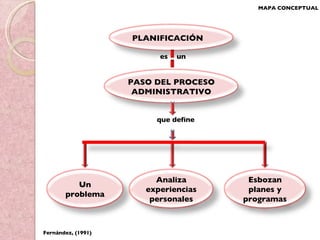 El documento presenta información sobre la planificación educativa. Define la planificación como un proceso sistemático que involucra definir objetivos, analizar alternativas y tomar decisiones para alcanzar los objetivos de manera eficiente. Explica los modelos, características, etapas y herramientas de la planificación como los árboles de problemas y los cronogramas de actividades. Resalta que la planificación es necesaria para prever situaciones y encontrar la mejor manera de alcanzar los objetivos de manera organizada.