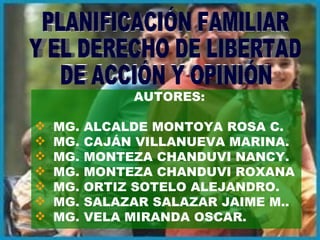 Este documento resume la situación actual de la planificación familiar en Perú y estrategias para mejorarla. Describe cómo la planificación familiar es un derecho que permite a las personas decidir el número y espaciamiento de hijos. Explica que aunque la fecundidad ha disminuido, aún hay demasiados embarazos no deseados. Propone estrategias como educación, consejería y acceso a métodos anticonceptivos para promover la toma de decisiones informadas sobre la reproducción.