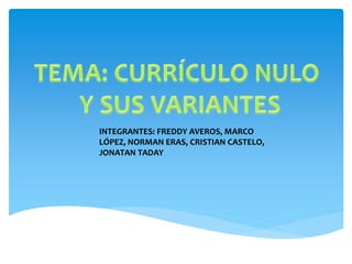 El documento resume cuatro tipos de currículos: el oficial, el operacional, el oculto y el nulo. Explica que los primeros tres pueden contribuir al aprendizaje, mientras que el nulo causa confusión y pérdidas. Luego describe las características de cada uno: el oficial se describe en documentos, el operacional se aplica en la enseñanza real, y el oculto representa normas y valores no reconocidos abiertamente.