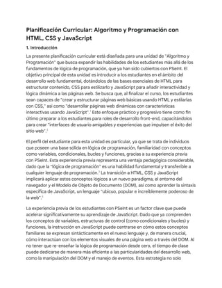 La presente planificación curricular está diseñada para una unidad de "Algoritmo y
