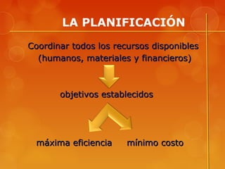 El documento describe las etapas de la planificación de eventos, incluyendo una etapa mecánica de previsión, planeación y organización, y una etapa dinámica de integración, dirección y evaluación. La etapa mecánica involucra determinar objetivos, analizar eventos previos, tomar decisiones iniciales y desarrollar un plan de trabajo y presupuesto. La etapa dinámica implica determinar recursos, contratar personal, supervisar la ejecución y evaluar los resultados luego del evento.