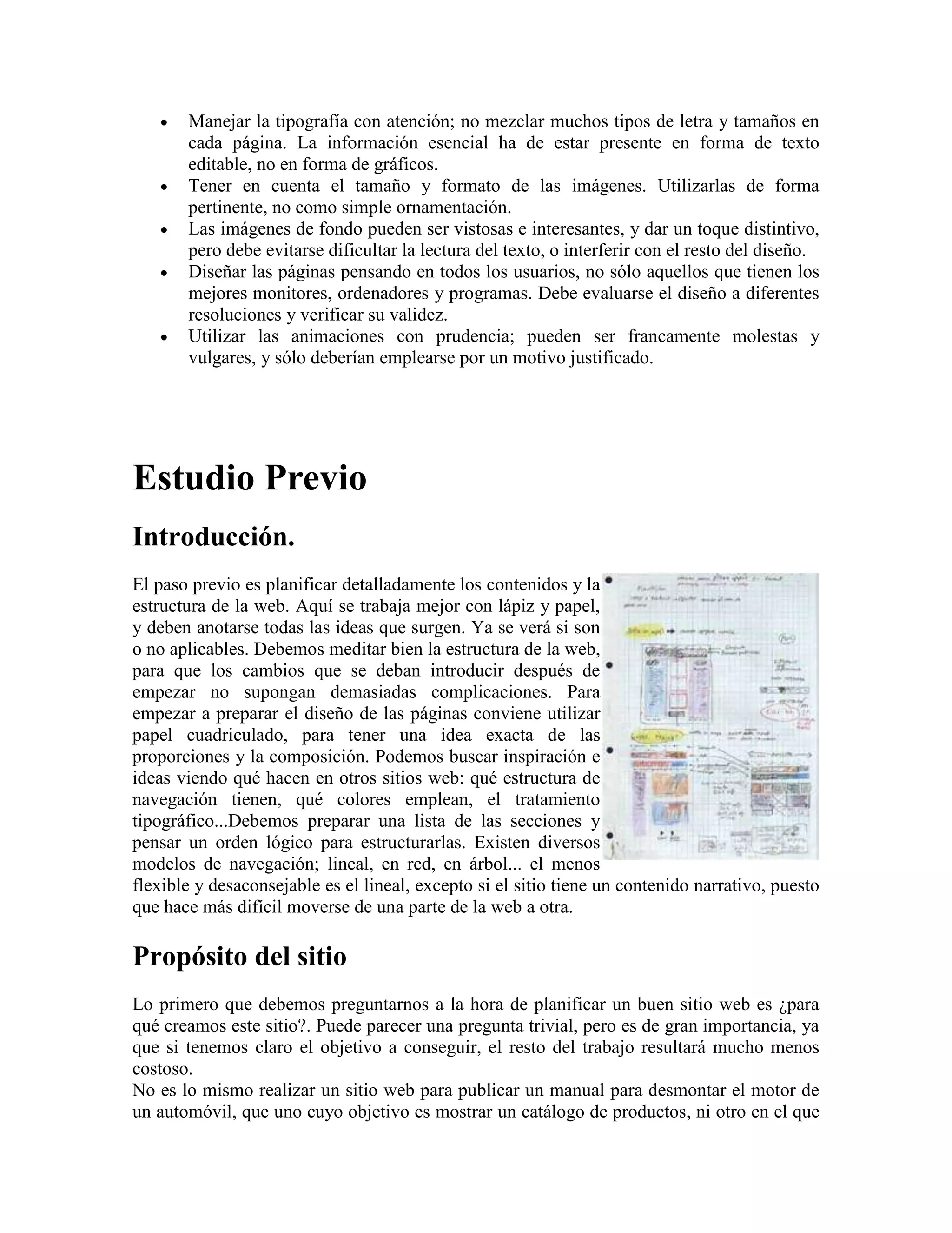 El documento presenta los pasos iniciales para planificar un sitio web. Primero, se debe definir el propósito del sitio y el público al que va dirigido. Luego, se debe recopilar y organizar la información que se presentará, incluyendo logotipos, textos, fotografías y más. Finalmente, se debe diseñar la estructura y navegación del sitio de acuerdo con el propósito y el público, haciendo el sitio fácil de usar y la información accesible.