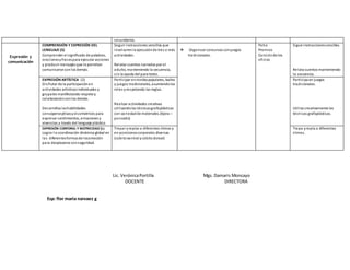 Este documento presenta el plan de estudios semanal para un grupo de niños de 4-5 años en el Centro de Educación Inicial "María Montessori". La planificación se centra en las profesiones y los servicios públicos. Las actividades propuestas desarrollan habilidades en identidad, convivencia, relaciones con el medio natural y cultural, lenguaje, expresión artística y motricidad. Los niños observarán materiales de diferentes profesiones, identificarán figuras geométricas, participarán en juegos y bailes tradic