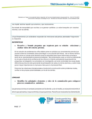 Este documento presenta el diseño de un ambiente de aprendizaje mediado por TIC para estudiantes entre 7 y 9 años. El objetivo es desarrollar aptitudes comunicativas, habilidades sociales y valores como el respeto y la paz. El ambiente busca que los estudiantes comprendan los elementos de la comunicación y los apliquen para mejorar sus relaciones interpersonales, generando ambientes de diálogo y armonía. Se implementará durante un periodo de tiempo aún no definido utilizando diversas herramientas tecnológicas y actividades que invol
