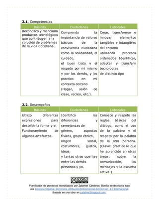 Este documento presenta un planificador de proyectos tecnológicos para estudiantes de primer grado. El proyecto consiste en elaborar estantes para organizar el salón de clase utilizando materiales reciclables como llantas y botellas de plástico. El proyecto sigue las fases de identificación del problema, diseño, organización, planificación y ejecución, y evaluación. El objetivo es lograr un mejor orden y aprovechamiento del espacio en el salón de clases.