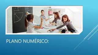 El documento define el plano numérico y sus componentes principales como el eje x, eje y y el origen. Explica cómo las coordenadas (x, y) se usan para ubicar puntos en el plano y cómo calcular distancias entre puntos. También resume las ecuaciones y propiedades básicas de figuras como rectas, circunferencias, parábolas, elipses e hipérbolas. Finalmente, presenta un ejercicio resuelto de puntos en el plano numérico.