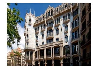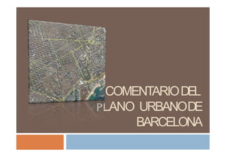 El documento resume el desarrollo urbano de Barcelona a lo largo de la historia en tres etapas: el casco antiguo, el ensanche del siglo XIX y la periferia. Describe las características del casco antiguo como su trazado irregular y alta densidad. Explica que el ensanche de Cerdá tenía un diseño ortogonal e higiénico. Finalmente, señala que la periferia creció anexionando municipios vecinos y alberga usos industriales y de transporte.