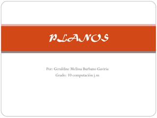 Este documento describe diferentes tipos de planos utilizados en la filmación, incluyendo planos generales que ofrecen una vista amplia del contexto, planos medios y cortos que enfocan en personas o objetos, y planos de detalle que muestran de cerca elementos específicos. También describe planos subjetivos que muestran la perspectiva de un personaje y diferentes ángulos como planos en picado, contra picado y frontal.