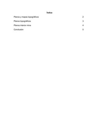 Los planos son dibujos que muestran las características físicas de los terrenos subterráneos y son aplicados en todos los procesos de minería subterránea, incluyendo la construcción de accesos, prospección, exploración, almacenamiento e investigación. Los planos topográficos muestran detalles como la escala, dirección e inclinación, y el intervalo de contorno, y son usados para guiar la perforación. Los planos del interior de la mina son importantes para la seguridad, organización de traba