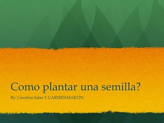 El documento explica los pasos para plantar una semilla: 1) Llenar un recipiente con tierra y mezclar las semillas, 2) Regar con agua, 3) Dejar al sol y regar dos veces por semana para mantenerla. También incluye un enlace a un video que muestra cómo plantar semillas.