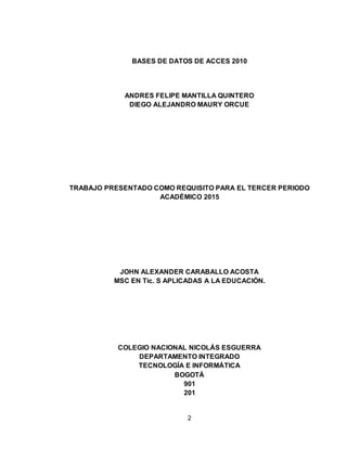 Este documento proporciona un resumen de tres oraciones sobre bases de datos de Access 2010: