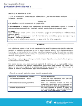 A. La solución propuesta es controlar el desperdicio de energía de la luz mediante un sistema que mantenga la luz apagada cuando haya suficiente luz ambiental y la encienda cuando detecte oscuridad, o que permita al usuario encender y apagar la luz manualmente.