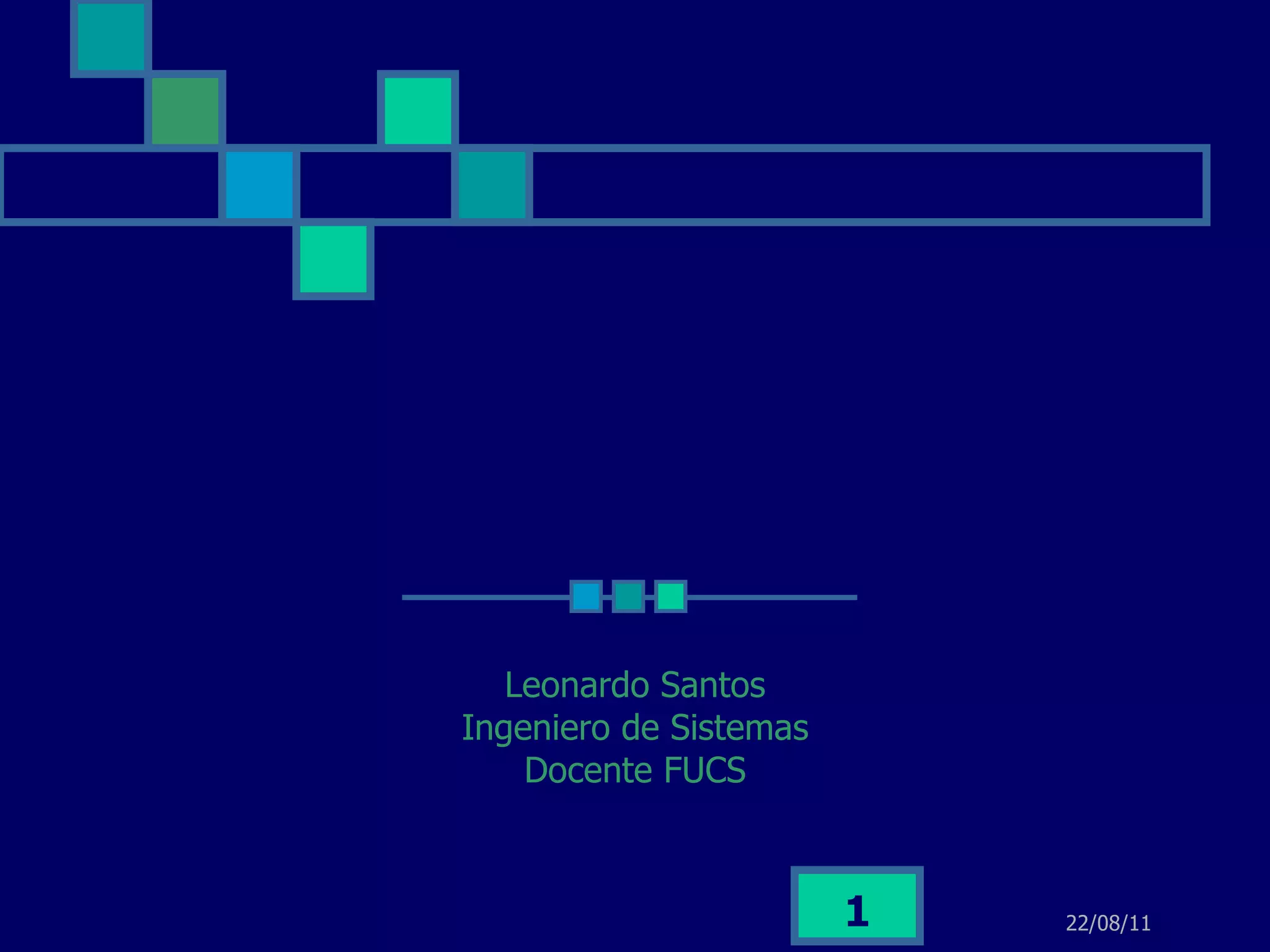 El documento presenta la visión, misión y situación actual de Leonardo Santos, un ingeniero de sistemas y docente. Su visión se enfoca en el futuro a largo plazo, mientras que su misión es educar a otros. Describe brevemente su situación actual y los antecedentes históricos que lo llevaron a donde está.