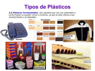 Este documento describe diferentes tipos y procesos de transformación de plásticos. Explica que los plásticos termoestables no pueden volver a fundirse una vez calentados y moldeados, mientras que los termoplásticos sí pueden volver a calentarse y moldearse repetidamente. También describe procesos como el moldeo a alta y baja presión, el espumado, y el calandrado para dar forma a los plásticos y producir objetos como envases, aislamiento, y láminas.