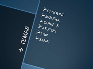 El documento describe y compara cuatro plataformas de e-learning: Claroline, Moodle, Dokeos y ATutor. Todas son plataformas de código abierto que permiten a los profesores crear cursos en línea, gestionar el aprendizaje y fomentar la colaboración. Cada una tiene características como módulos interactivos, herramientas de evaluación y funciones de administración de cursos.
