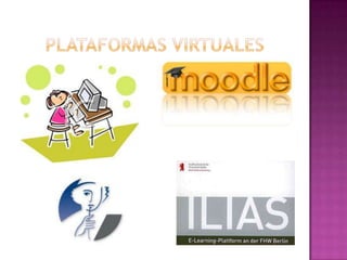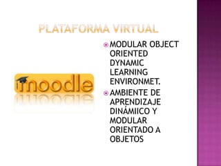 Este documento describe varias plataformas de aprendizaje en línea. Moodle es un sistema de administración de cursos en línea de código abierto diseñado para comunidades de aprendizaje basado en principios pedagógicos constructivistas. Se mantiene por un equipo en Australia y se usa en más de 50,000 comunidades de aprendizaje. Claroline es un ambiente de aprendizaje dinámico y modular creado en Bélgica en 2001 por cinco universidades para e-learning en escuelas y negocios. Chamilo es