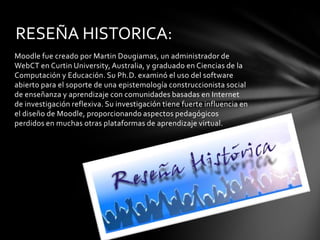 Este documento describe las plataformas virtuales de aprendizaje y la plataforma Moodle. Explica que las plataformas virtuales son herramientas basadas en páginas web que permiten organizar cursos en línea o apoyar actividades educativas presenciales. Luego, se detalla que Moodle es un sistema de gestión de aprendizaje virtual de código abierto diseñado para crear comunidades de aprendizaje en línea facilitando la administración de cursos para profesores y estudiantes. Finalmente, resalta algunas